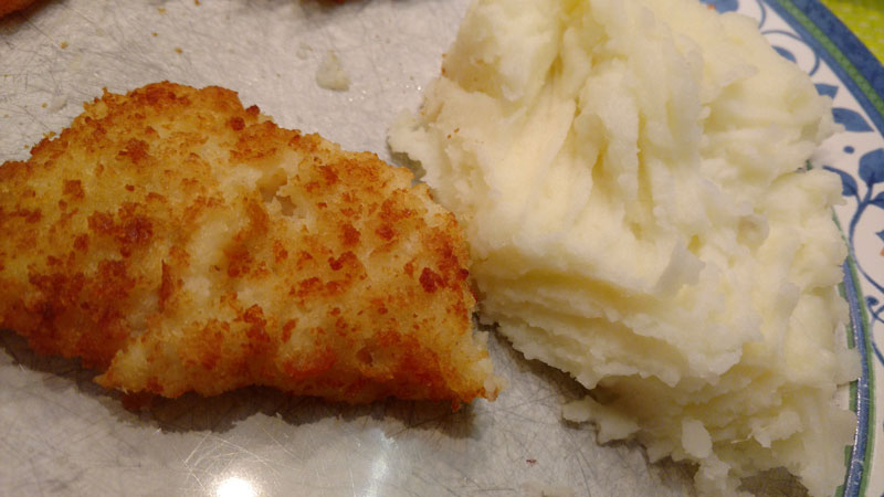 - Fizemos bolinhos de arroz + pure de batata + peixe no forno para janta