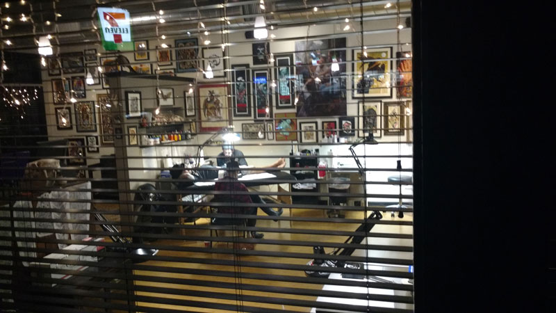 - Na volta pra casa passamos em frente a um lugar onde fazem tatuagens que sempre tem alguém fazendo :)