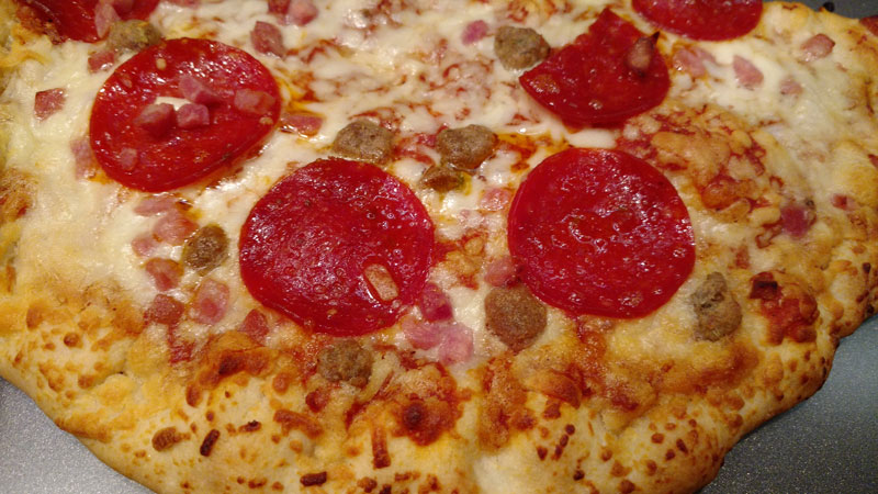 - Fizemos uma pizza congelada que tínhamos comprado no super (quase não consegui comer por causa da pimenta)