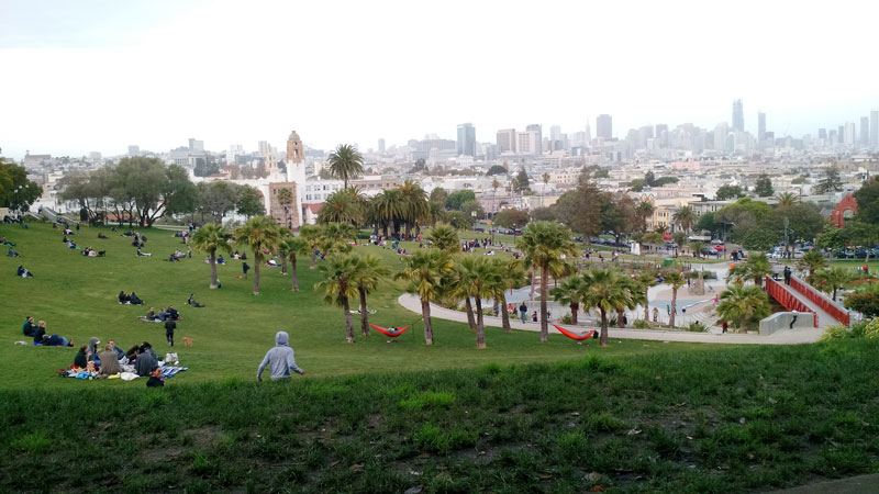 - Descemos na praça Mission Dolores Park: estava um friozão e a galera curtindo