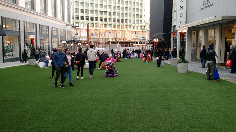 - Passamos pela Union Square, onde tem uma pista de gelo e as pessoas andam de patins.