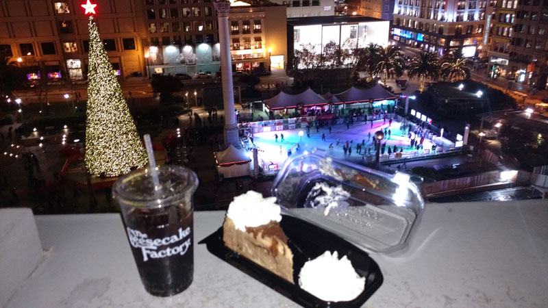 - Chegando na Union Square, entramos na Cheesecake Factory na Macys para ir no banheiro