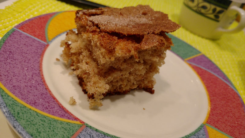 - Fiz um bolo de banana com canela, pra aproveitar as bananas que havíamos comprado, pois estavam verdes por