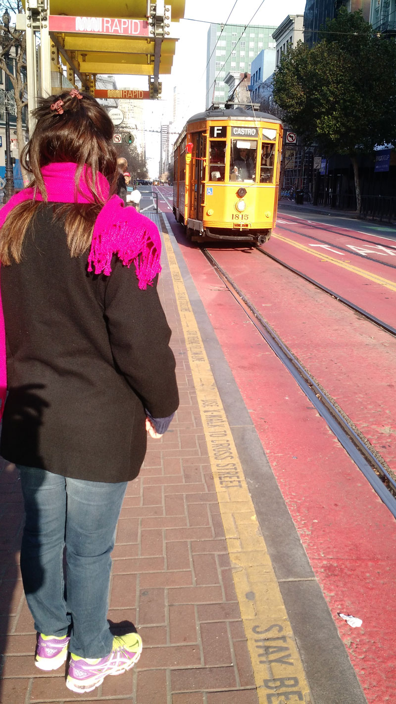 descemos na estação Civic Center e pegamos um Trolley, que é um trem antigo elétrico. Seria