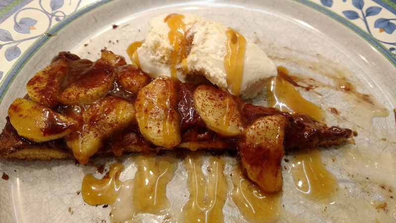 - E de sobremesa, pizza doce, claro! De Nutella com maçã/banana e canela! Com sorvete e caldas!!! :D