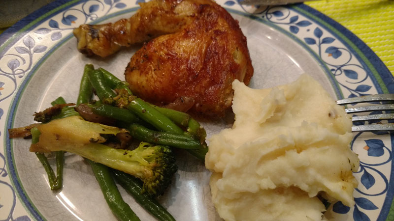 - Voltamos pra casa, não estava tão frio, jantamos frango assado com purê de batatas e legumes :)