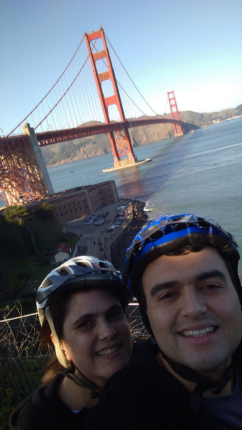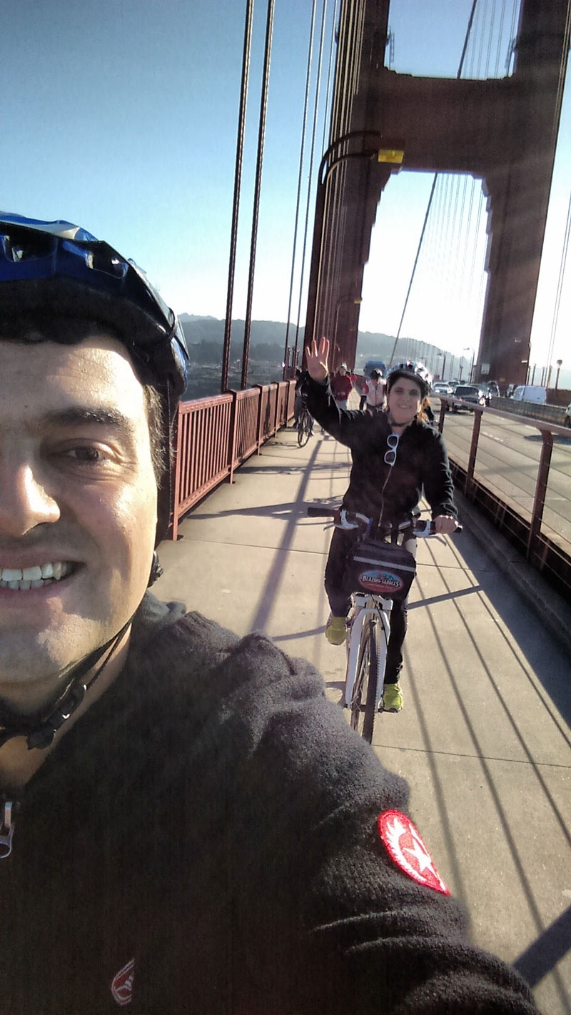 - Chegamos às 13h, pegamos 2 bikes e fomos em direção a Golden Gate Bridge: são 6km até o início