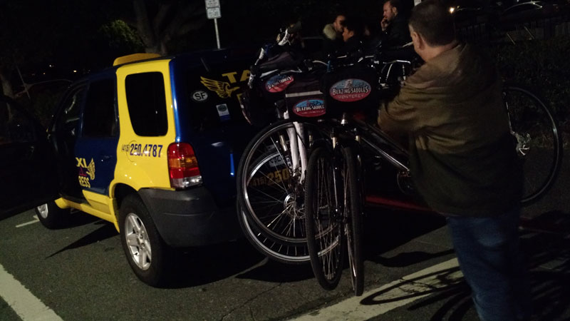 - Saímos de casa em torno das 22h e fomos de bike até a estação de trem (BART) aqui de Berkeley, deixamos as bikes lá e fomos