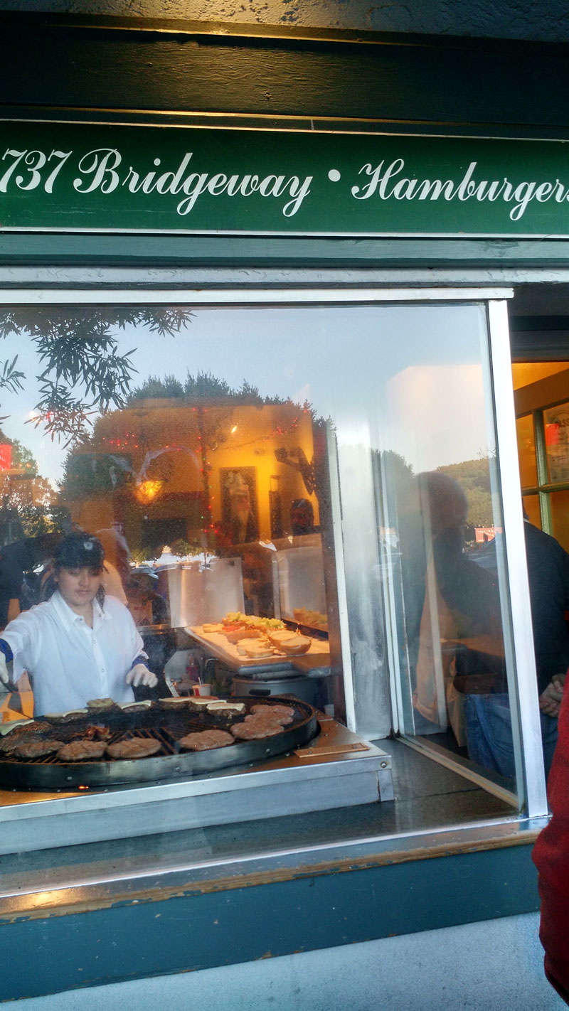 chama "Hamburgers" (fica na 737, Bridgeway que é a rua principal, de chegada). Sempre tem fila. Pedimos