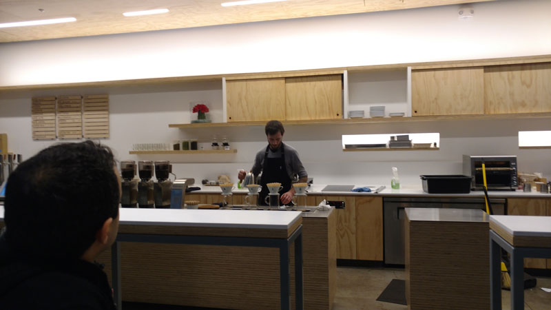 bem clean e os atendentes ficam fazendo os cafés ali na frente de todo mundo (US$5.75).