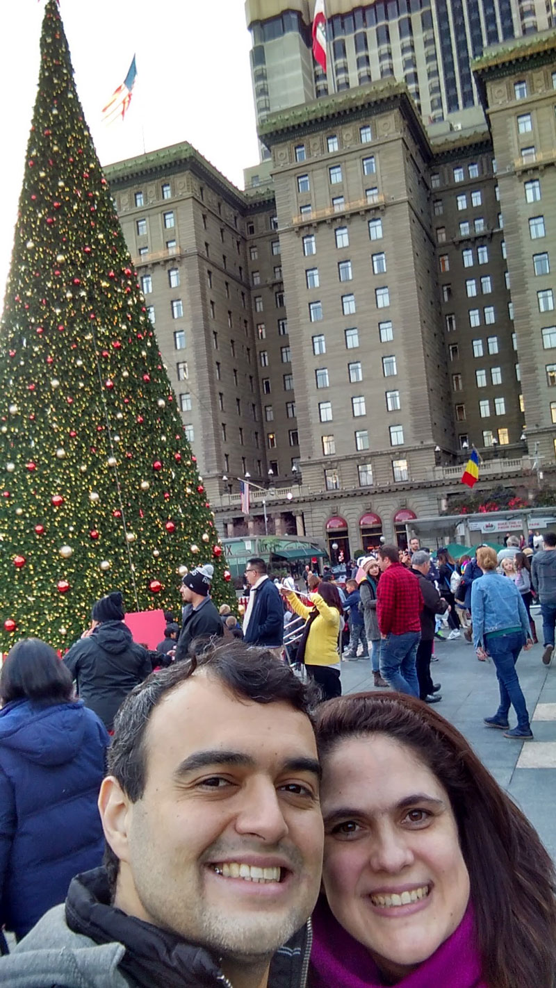 - Passamos pela Union Square, onde tem uma pista de gelo e as pessoas andam de patins.