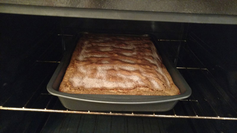 - Fiz um bolo de banana com canela, pra aproveitar as bananas que havíamos comprado, pois estavam verdes por