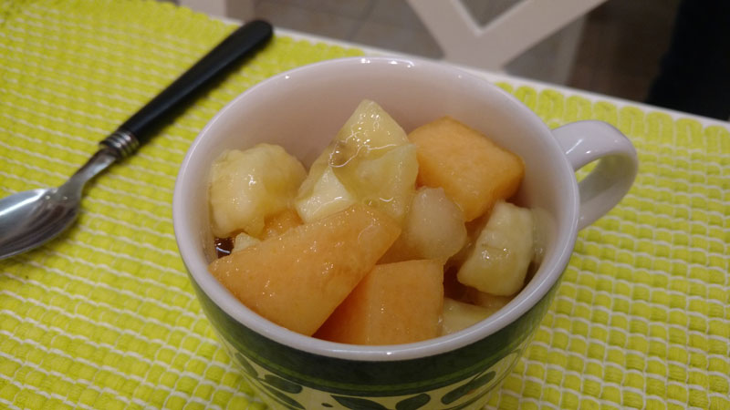 - Tínhamos comprado umas frutas para fazer salada de frutas, que faz dias q não comemos, é muito caro aqui!