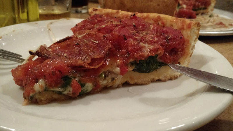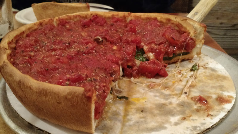- É uma pizza Chicago Style: é tipo uma torta (stuffed), pedimos o sabor que eles sugeriram,