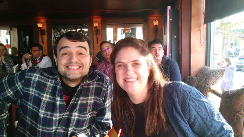 - Fomos de Uber para Oakland (US$5.75) participar de um Meetup sobre JavaScript às 17:30: mas apareceu apenas mais um