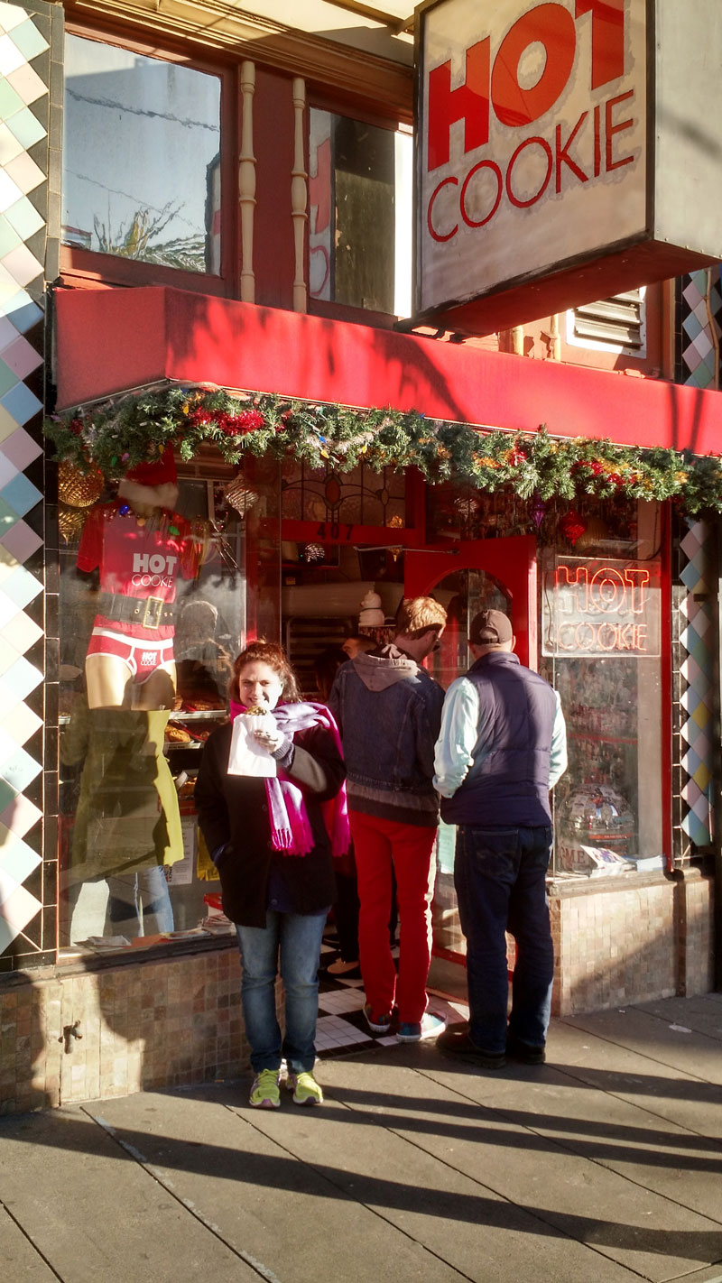 - Depois fomos provar as famosas Hot Cookies, que fica ao lado do Twin Peaks: comemos uma