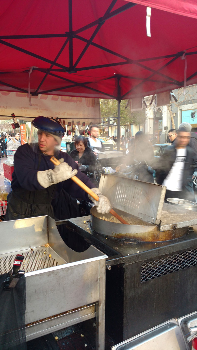 - Fomos para o centor de SF. No caminho para Union Square passamos por um cara numa banquinha fazendo pipocas
