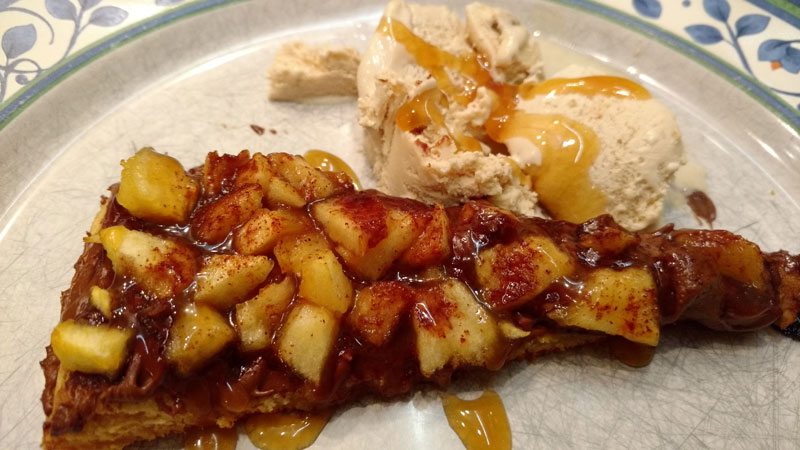 - E de sobremesa, pizza doce, claro! De Nutella com maçã/banana e canela! Com sorvete e caldas!!! :D