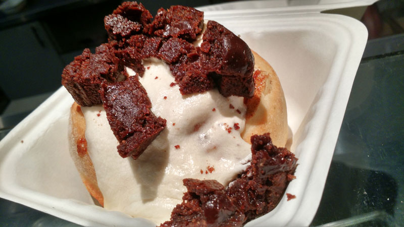 pedimos os mesmos sabores da outra vez: caramel + brownie bites. Mas não conseguimos comer todo, sobrou e levamos pra casa.