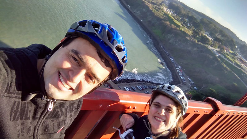 - Chegamos às 13h, pegamos 2 bikes e fomos em direção a Golden Gate Bridge: são 6km até o início