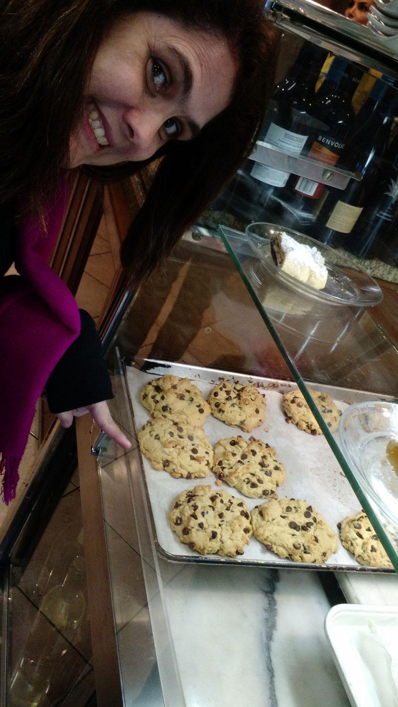 sobre os cookies e brownie. Nós pedimos um chocolate quente com chantilly, um cookie (que é o mais