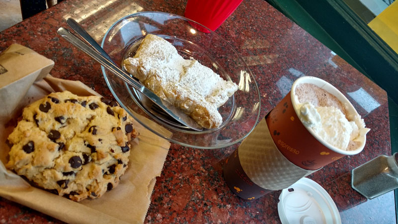 - Então fomos no Starbucks que tem ao lado e comemos um muffin com chocolate quente,