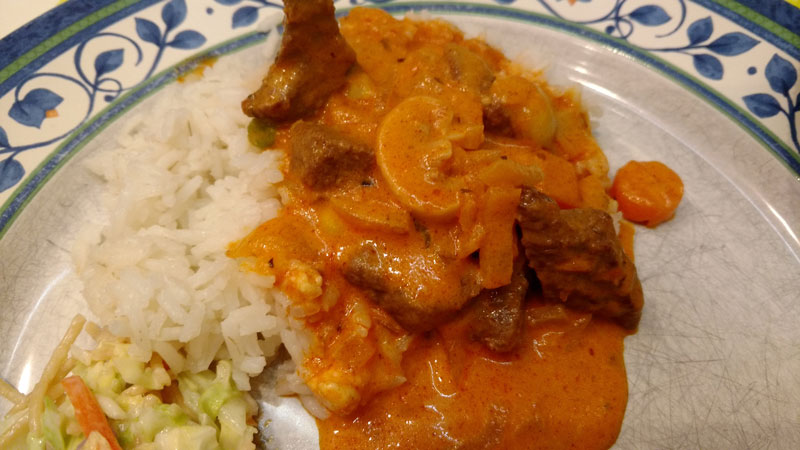 com uma carne que compramos no super que não sabemos qual é, e com uma coisa