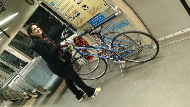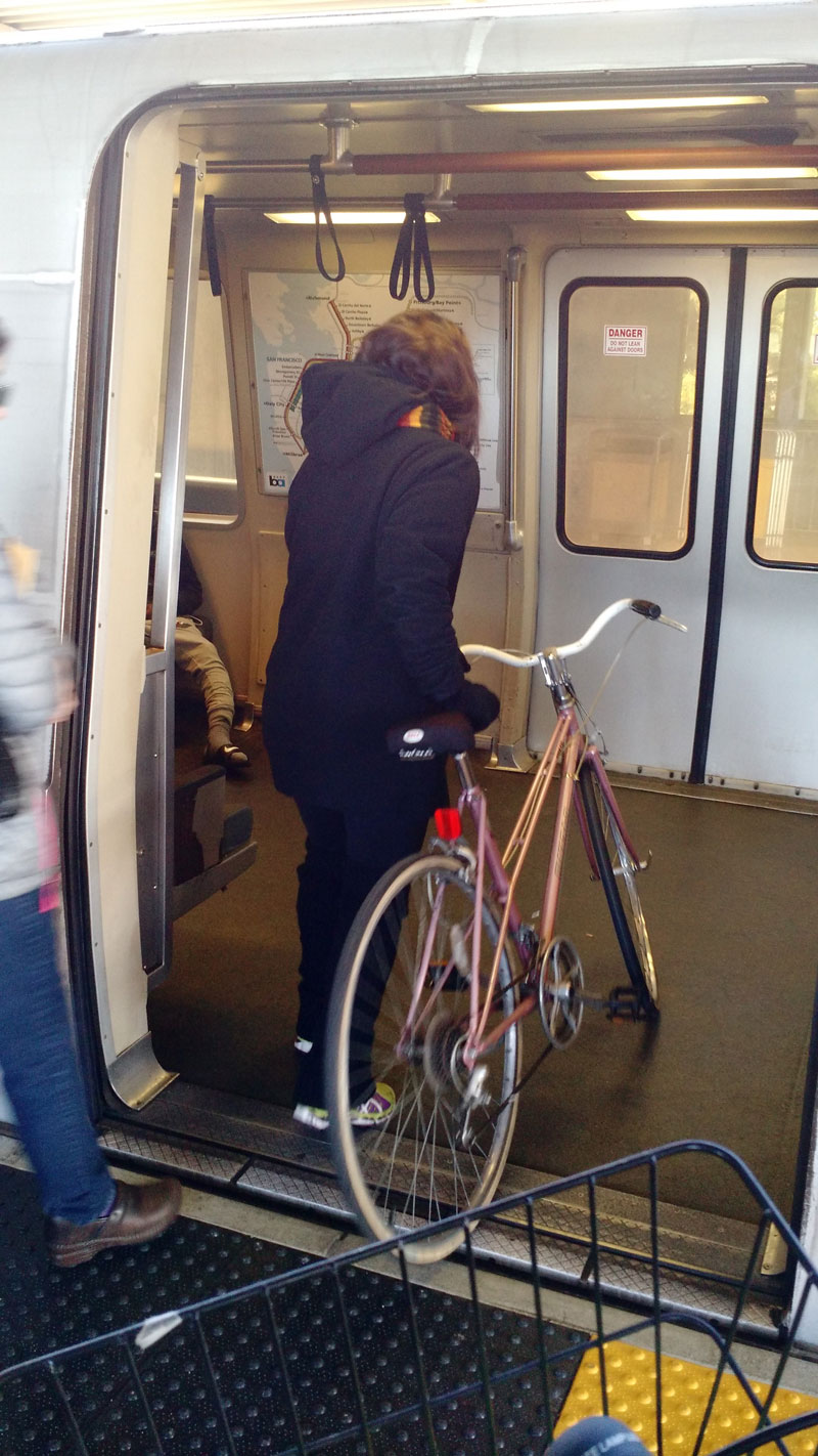 até a estação do trem aqui em Berkeley (2.5km = 10min), entramos com as bikes no trem e fomos
