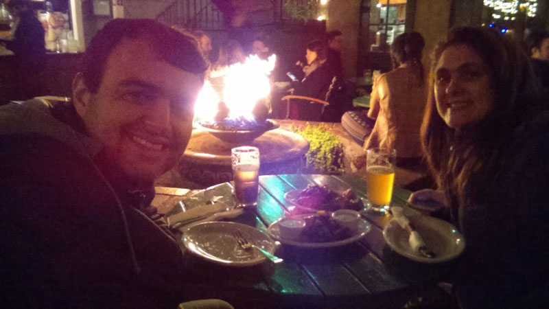pra cada um de nós :D (US$38). Tudo estava muito delicioso! Apesar dos 8 graus, conseguimos ficar em uma mesa na rua, pois estávamos bem perto de uma fogueira :)