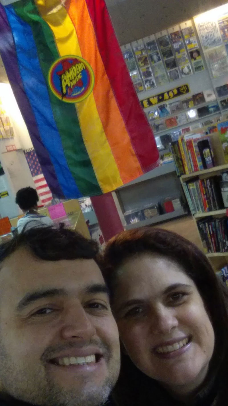 diferentes, antiquários, bares e cafeterias. Fomos até a Amoeba Music, uma loja de discos que fica na 1855, Haight St.