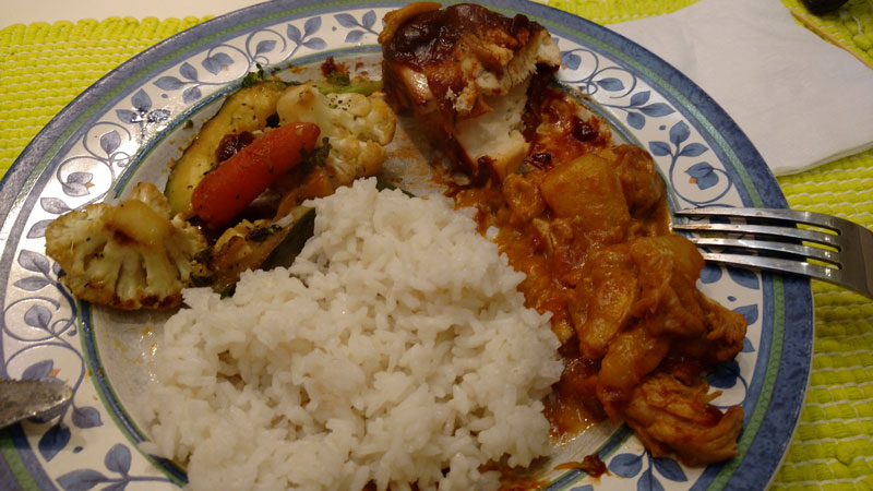 - Acabamos comprando comida pronta também, para a janta: frango com molho e batatas + frango barbecue e vegetais (pra